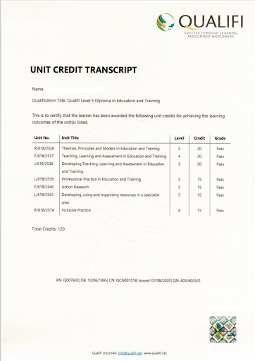 More information about the units can be found here https://qualifi.net/qualifi-level-5-diploma-in-education-and-trainin